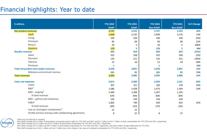 2月7日,Incyte公布2022年业绩,全年总收入33.95亿美元,同比增长14%。其中产品净收入为27.47亿美元,同比增长18%。
